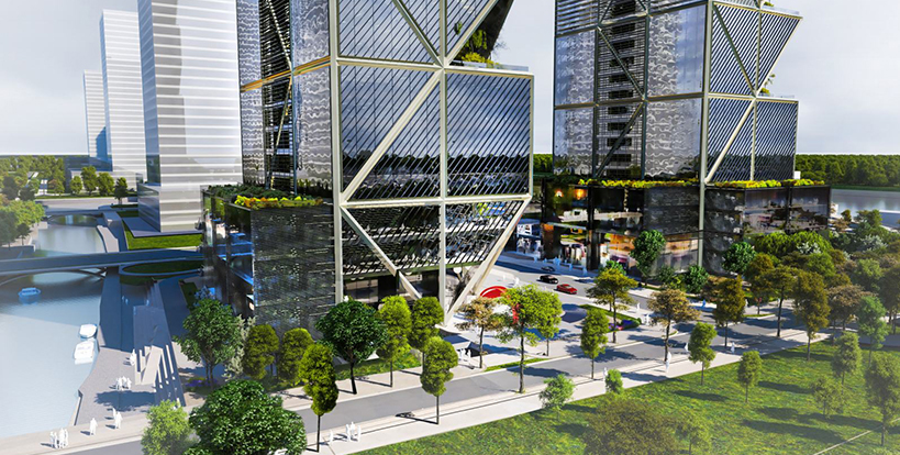 Recently, Rinro successfully won the bid for consultant design of the outer wall of the central project of Guangdong Bay Area. The project site is located on Nansha Lingshan Island, which is part of the overall planning of the commercial city in the surrounding area. To its east and west sides, lays the green public space, at north there is a canal while has the view of the sea at its south side. This will be a prime location for future landmark projects at the headquarters.